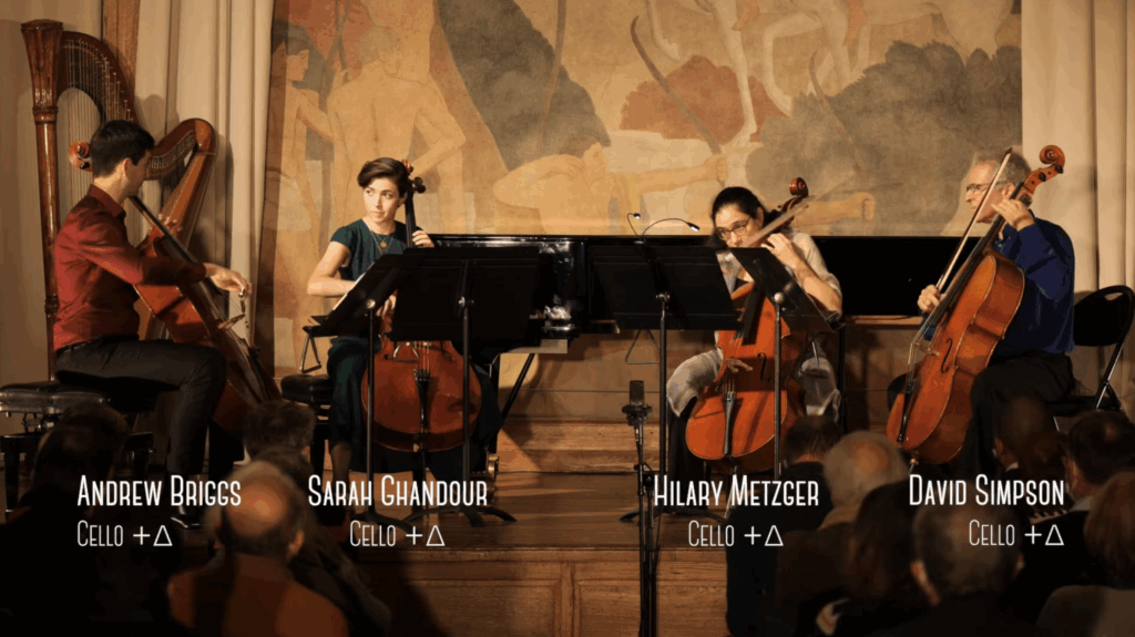 Ten Rooms pays tribute to these teachers through a musical naming device and calls for each of the four ‘cellists to also play a triangle (one, for each player).